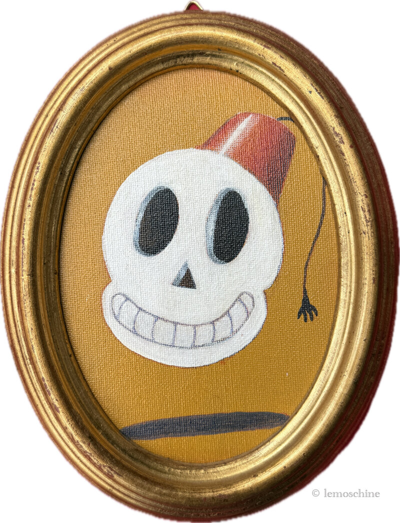Il Mortino è uno dei primissimi personaggi de "Le Moschine", una serie che si ispira all'iconografia dei vecchi cartoni animati americani degli anni '20 e '30 del ‘900 e alla pittura pop surrealista.