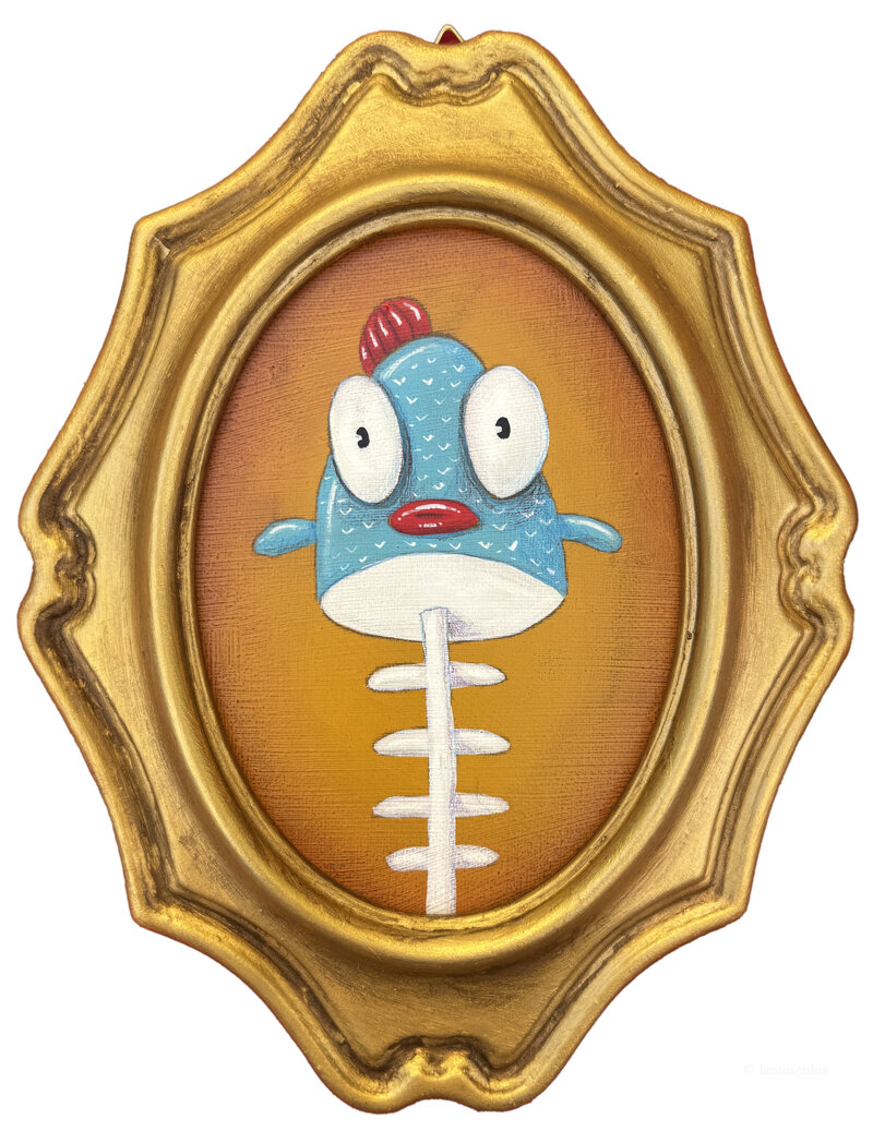 La Lisca (bonefish) è parte de "Le Moschine", una serie di personaggi che si ispira allo stile dei vecchi cartoni animati americani degli anni '20 e '30 del ‘900 e alla pittura lowbrow pop surrealista.
