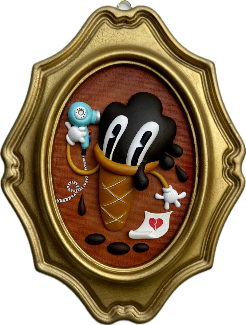 Il Gelatino è parte de "Le Moschine", una serie di personaggi che si ispira allo stile dei vecchi cartoni animati americani degli anni '20 e '30 del ‘900 e alla pittura lowbrow pop surrealista.